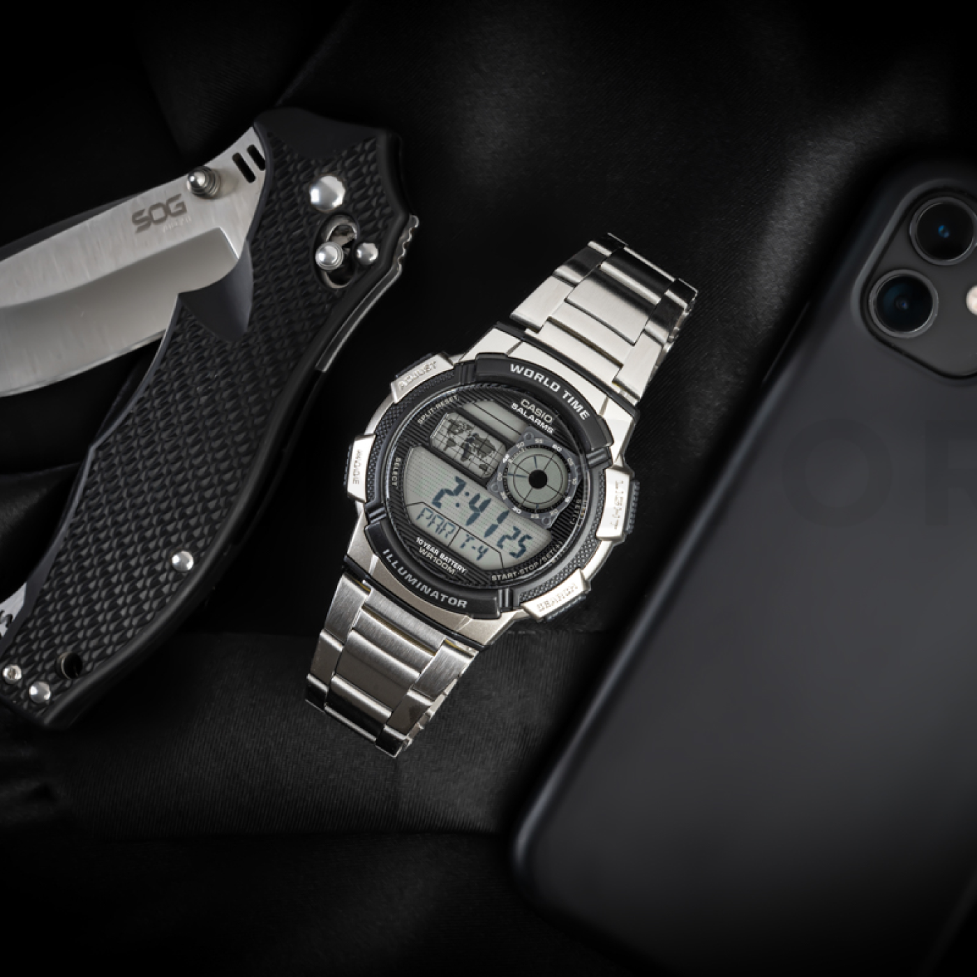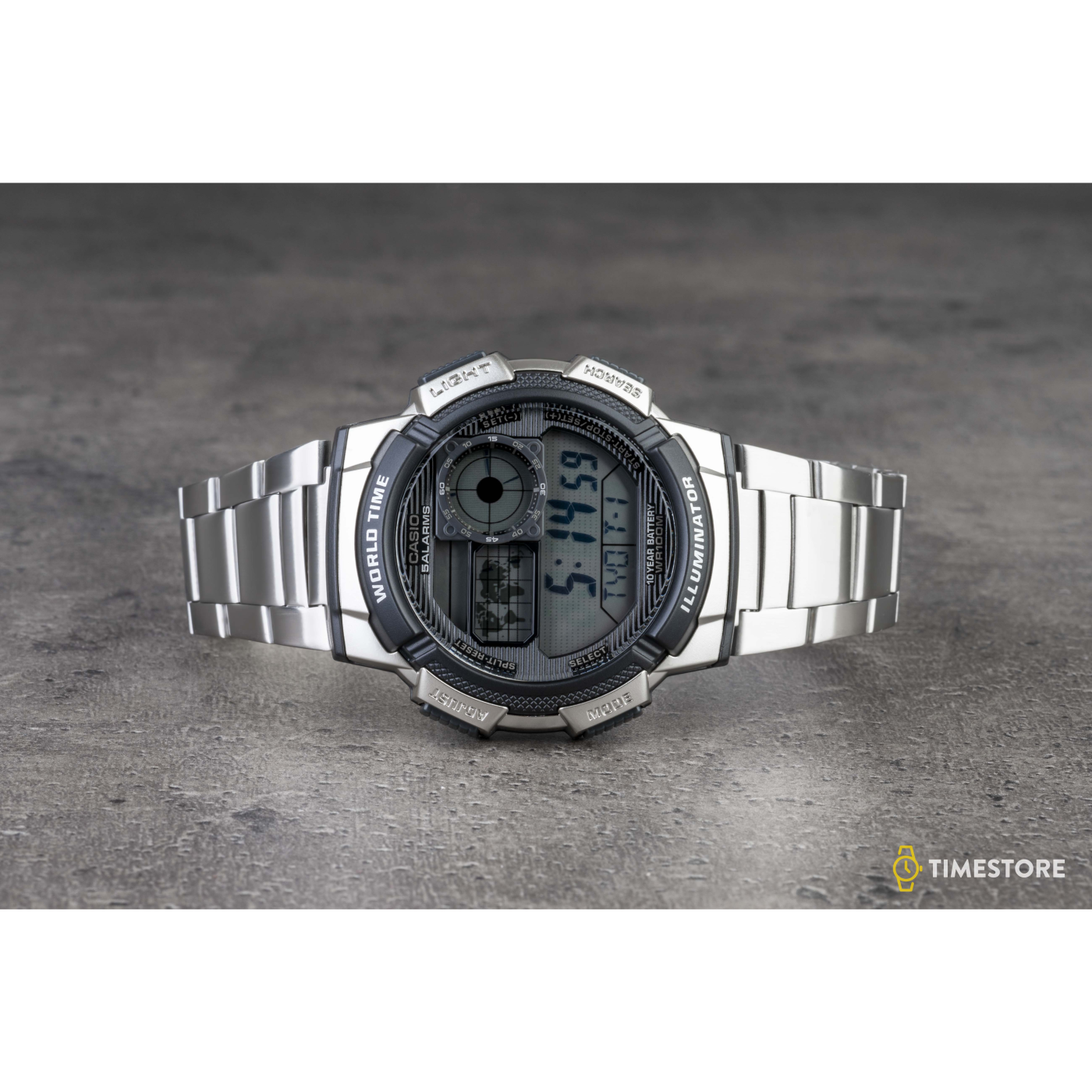 Alarm, Chronograf, Stoper, Podświetlenie, Wieczny kalendarz, Czas światowy