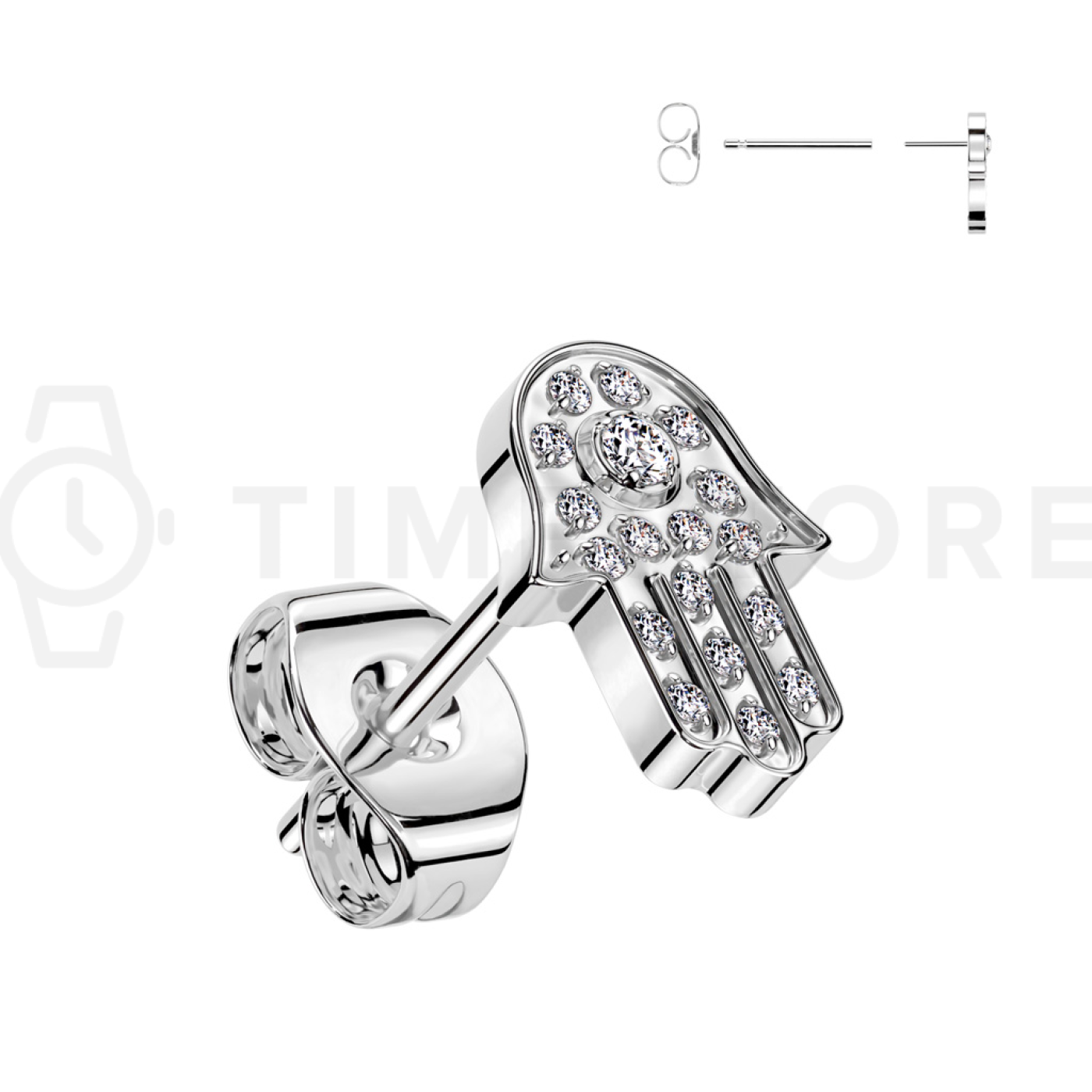 Tytanowe kolczyki sztyfty w kształcie dłoni Fatimy z cyrkoniami - Single