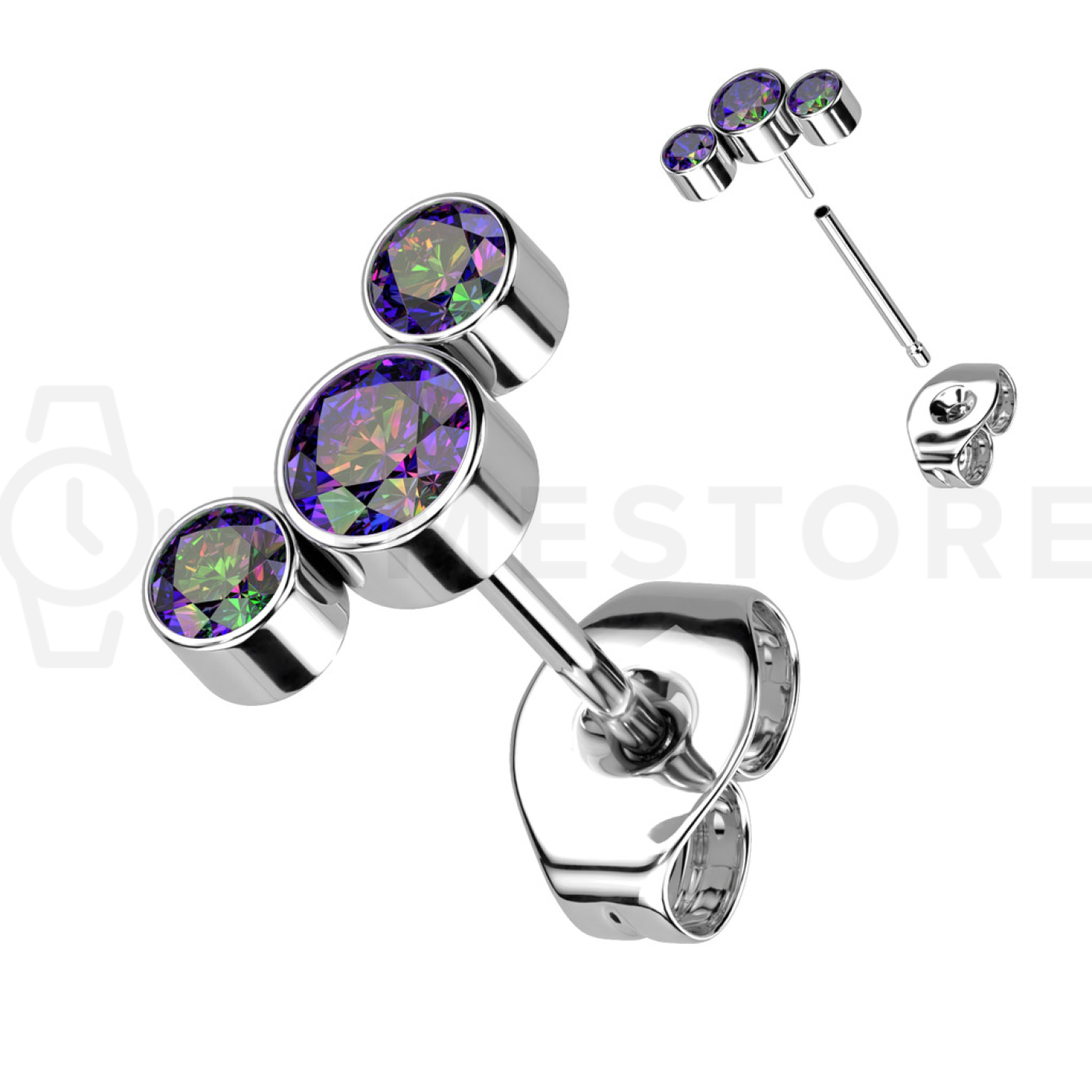 Szczegółowy opis Tytanowe kolczyki sztyfty z kolorowymi cyrkoniami - Single